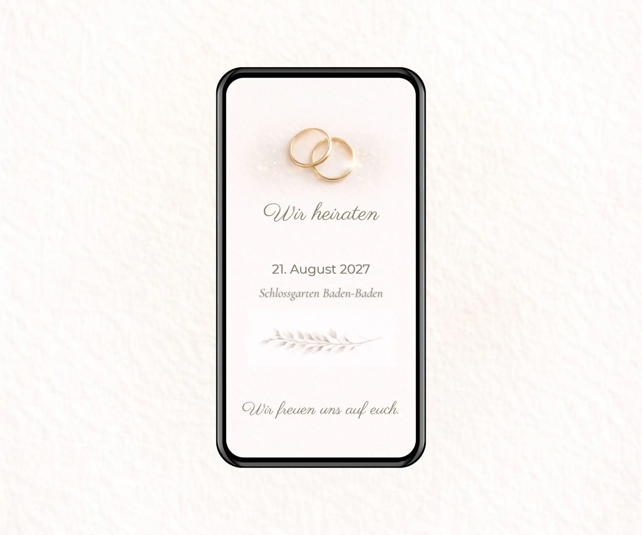 Digitale Hochzeitseinladung für Brautpaare, die ihren großen Tag bewusst und stilvoll ankündigen möchten.