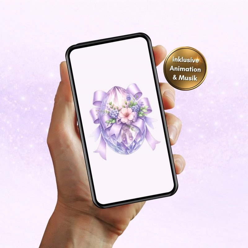Ich gestalte jede Oster-eCard persönlich als Unikat. Du bekommst ein animiertes MP4-Video mit Frühlingsmotiven und lizenzierter Musik. Nach dem Kauf steht dein Download sofort bereit. Du leitest die eCard einfach per WhatsApp weiter - so oft du möchtest.