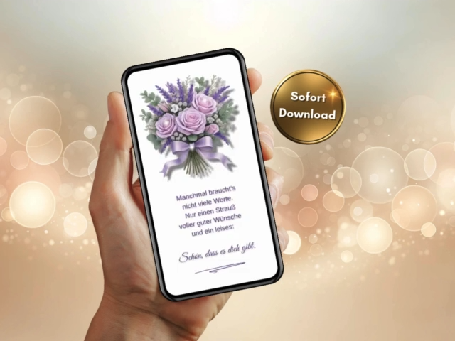 Ich bekomme oft die Frage: “Wie kann ich eigentlich virtuelle Blumen verschicken?” Die Antwort ist ganz einfach: Du wählst bei mir ein wunderschönes Blumendesign aus, fügst deine persönliche Nachricht hinzu und verschickst die digitale Blumenkarte sofort per WhatsApp oder E-Mail. Das Ganze dauert keine zwei Minuten und kommt direkt beim Empfänger an - ohne Lieferzeit, ohne Verwelken, aber mit ganz viel Herzlichkeit.