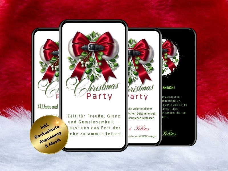Wenn die Zeit knapp wird und du schnell eine Lösung benötigst, ist diese digitale Karte genau das Richtige für dich. Ich erstelle sie innerhalb von 1-2 Stunden, sodass du sie sofort per WhatsApp oder E-Mail an deine Gäste senden kannst. Dadurch musst du dir keine Sorgen machen, ob alles rechtzeitig ankommt. Besonders in der hektischen Vorweihnachtszeit ist diese einfache Lösung perfekt, denn sie spart dir Zeit und Stress. Außerdem erhalten deine Gäste die Einladung schnell und können sich sofort auf deine Feier freuen. Deshalb macht diese digitale Variante es dir leicht, stilvoll einzuladen, ohne lange Vorlaufzeiten einplanen zu müssen.